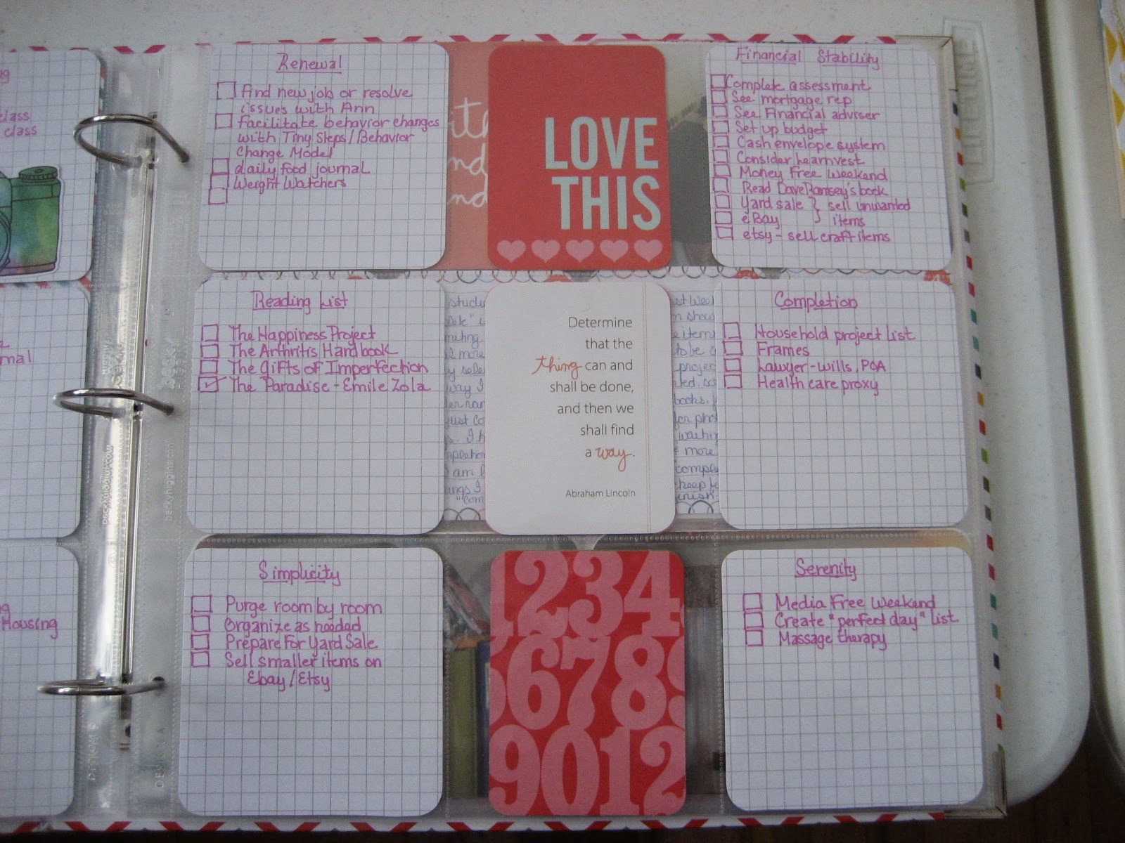 I think the thing that I like most about this system is that it gives me a place to put all the things I want to remember/have handy in one notebook. While it obviously has my calendar and a space for daily to do's I can create lists for all the various projects I want to to do or are working on.